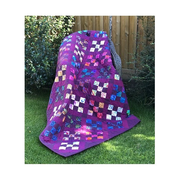 A gorgeous purple quilt in Kaffe Fassett prints and purple background fabrics - perfect to combine with Moda Grunge fabrics.